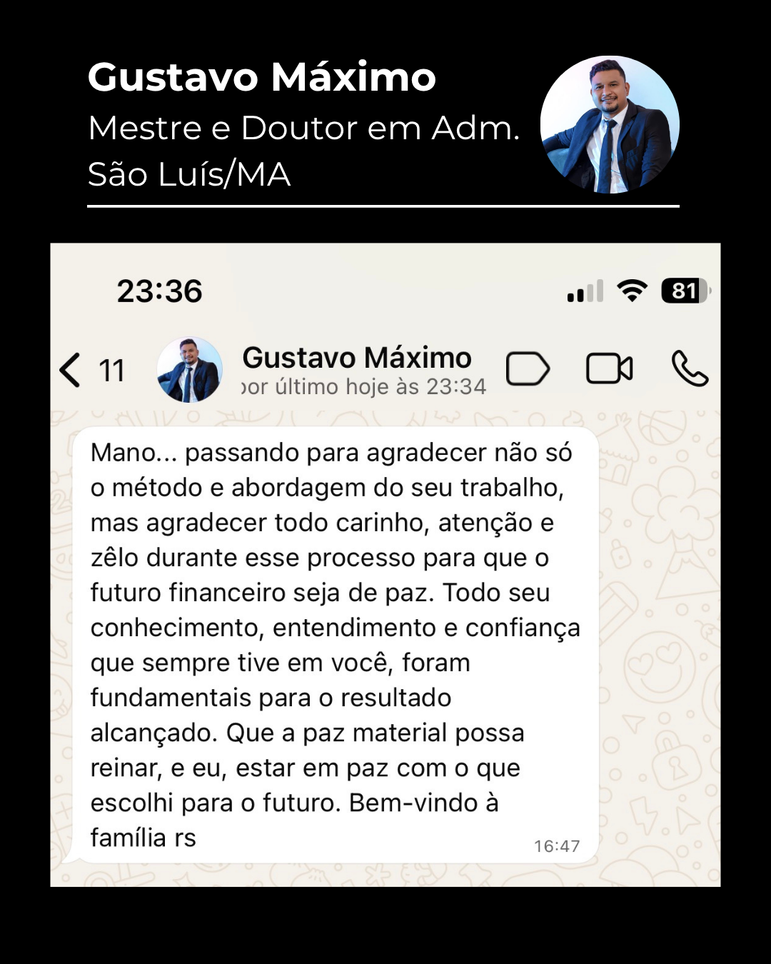 Criei meu próprio método com base em mais de 12 anos de experiência como investidor, conselheiro de empresas e mentor financeiro — além de milhares de atendimentos que realizei ao longo da jornada.